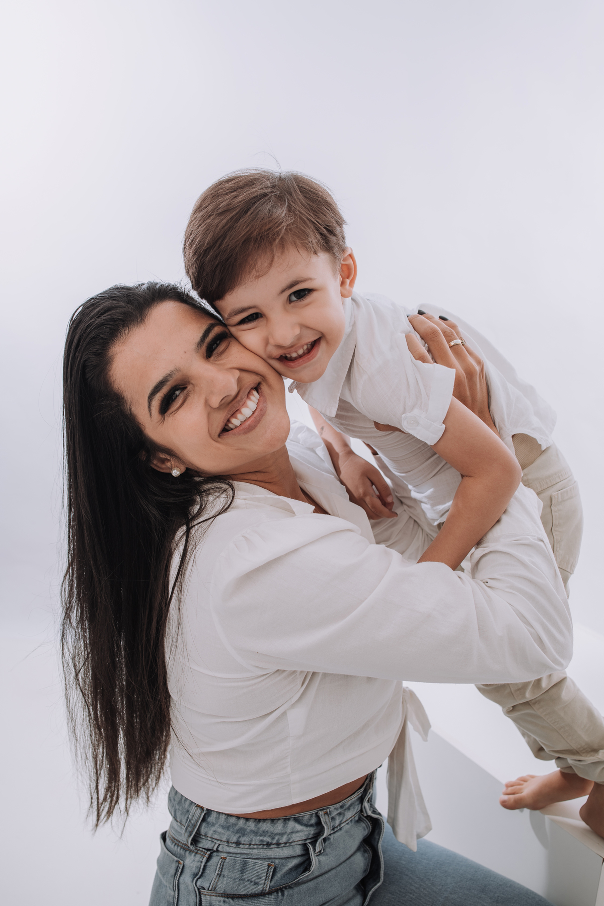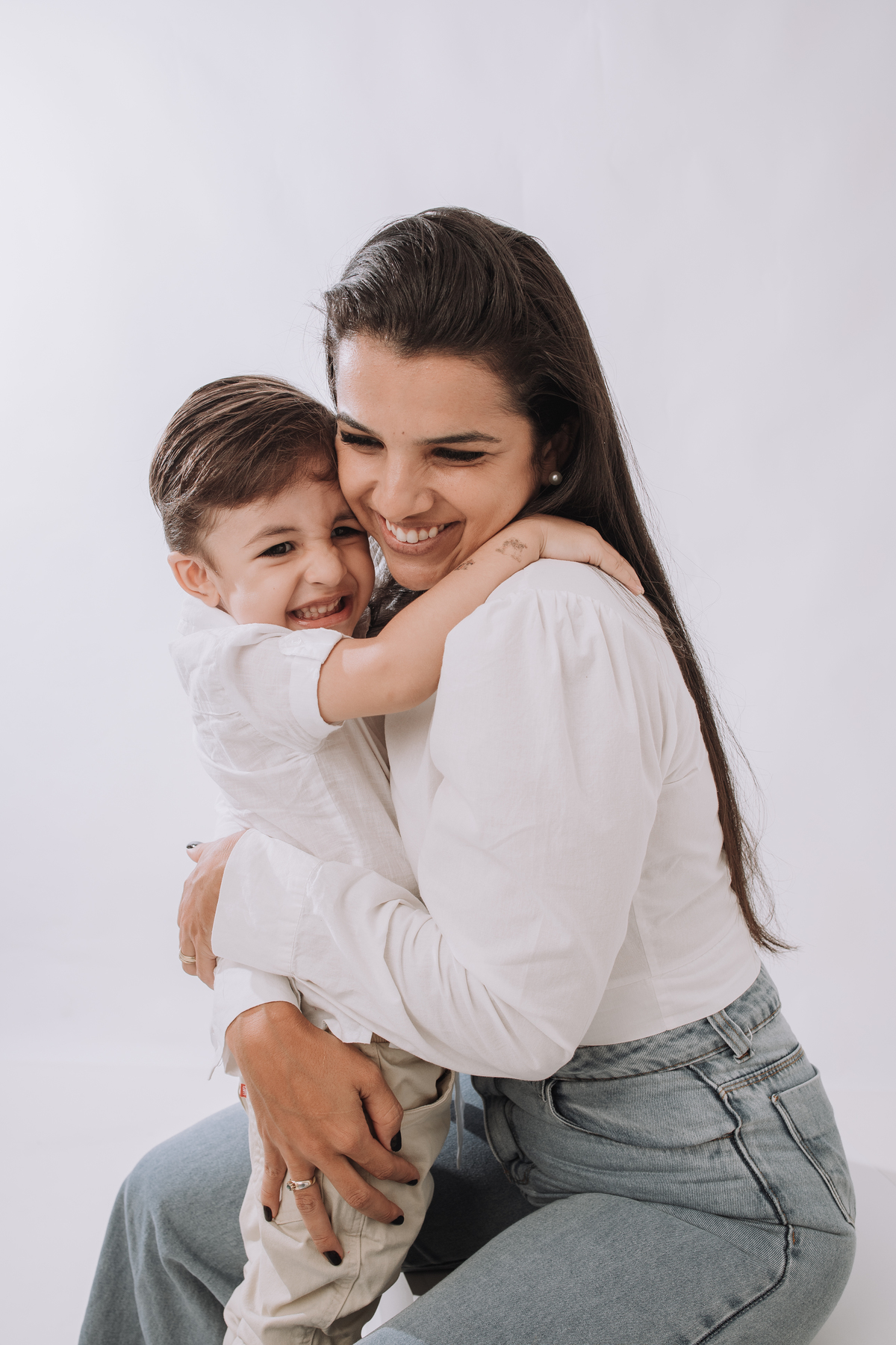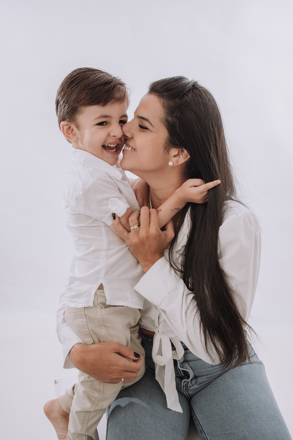 Ensaio mãe e filho no estudio. Leve, afetivo e atemporal.